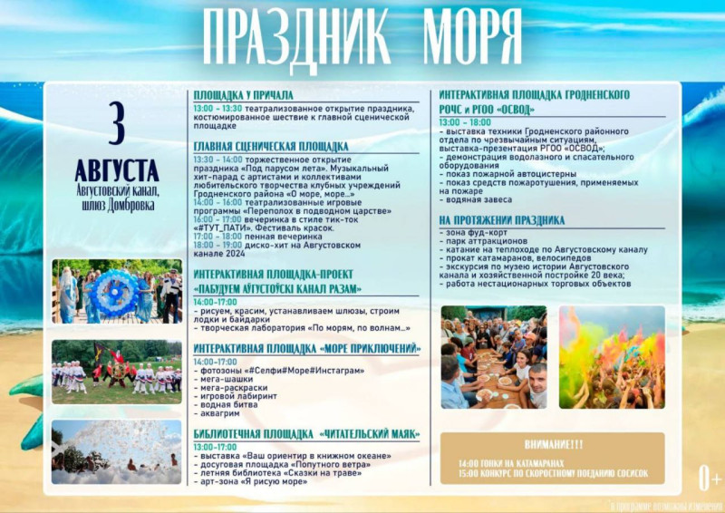 3 августа приглашаем всех любителей водных развлечений на грандиозный праздник моря на Августовском канале, шлюз Домбровка!