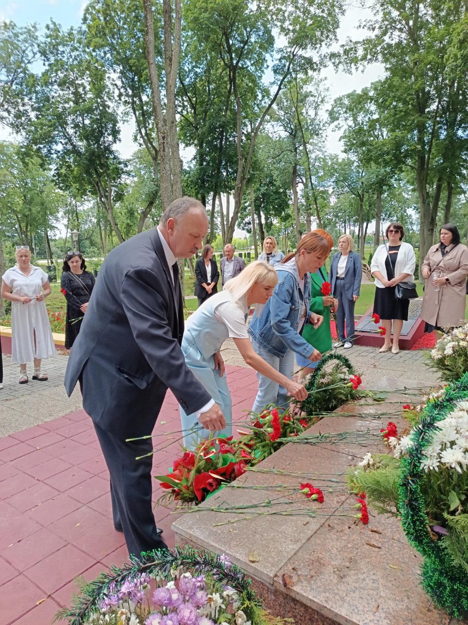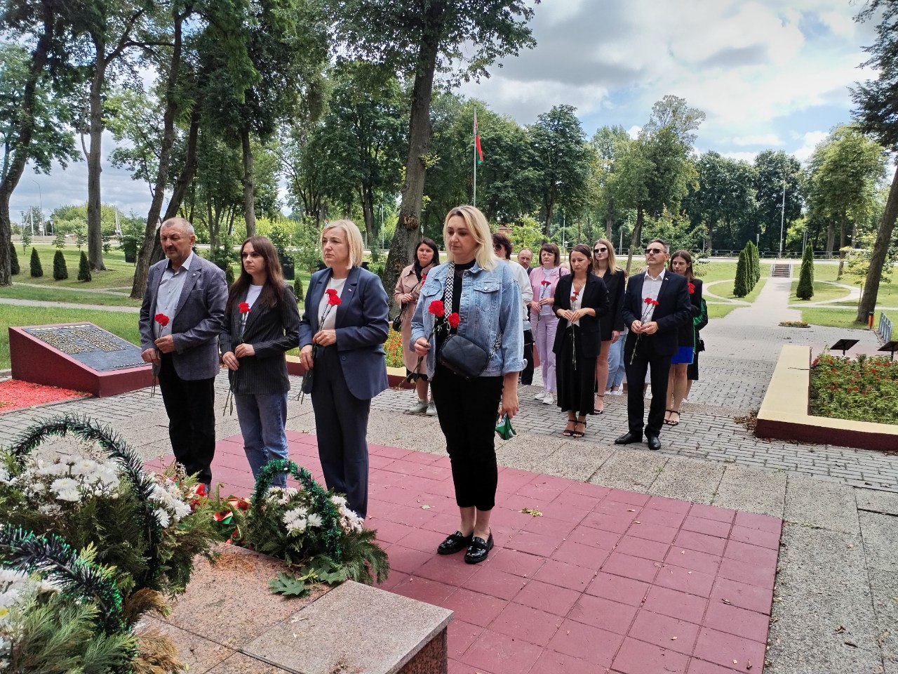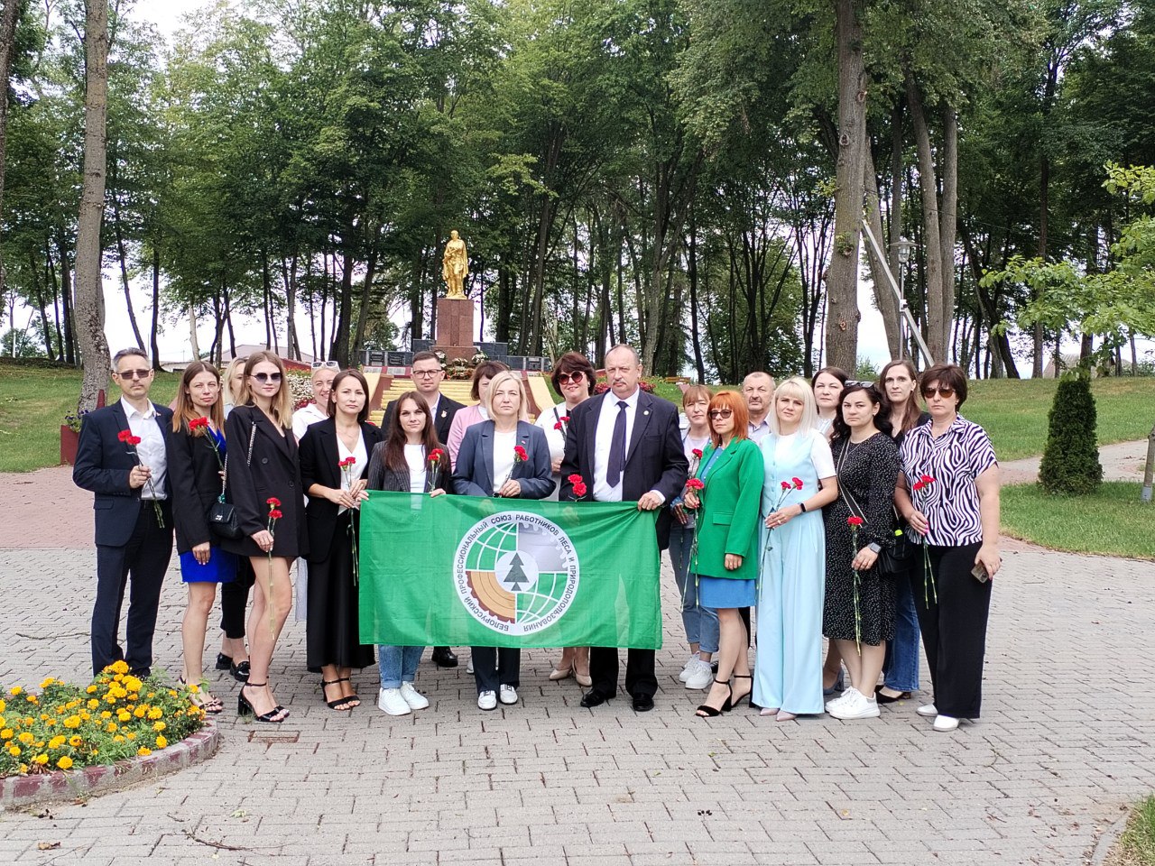 В год 80-летия Великой Победы участники расширенного заседания президиума областного комитета, представители Гродненской областной организации Профсоюза работников леса и природопользования возложили цветы к памятнику воинам и партизанам, погибшим в годы Великой Отечественной войны, где захоронено 1138 погибших солдат Красной Армии, освобождавших город Скидель и его окрестности.