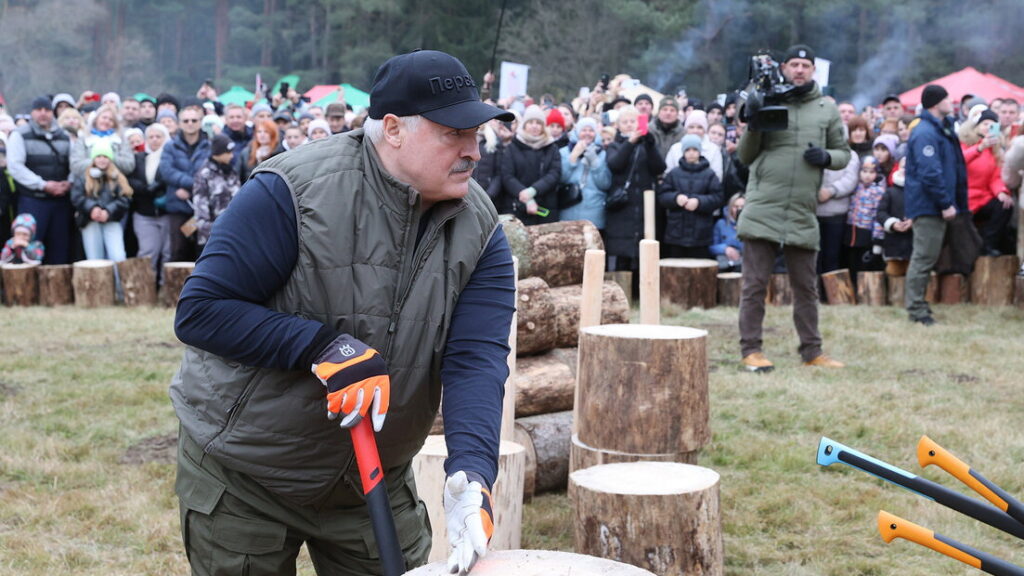 Александр Лукашенко 7 ноября приехал на чемпионат по колке дров среди журналистов