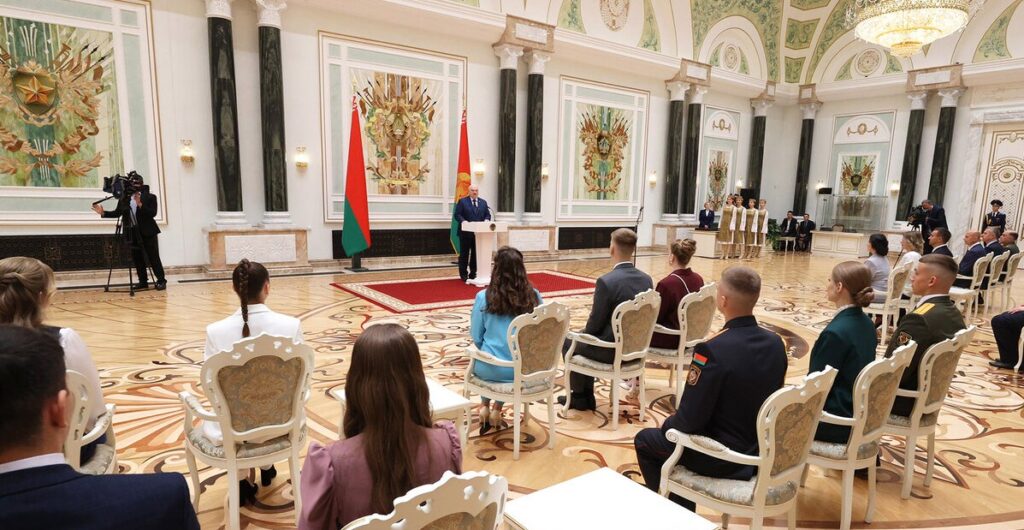 Президент Беларуси Александр Лукашенко 28 июня, накануне Дня Независимости и 80-летия освобождения страны от немецко-фашистских захватчиков, провел церемонию награждения выпускников и преподавателей учреждений высшего образования.