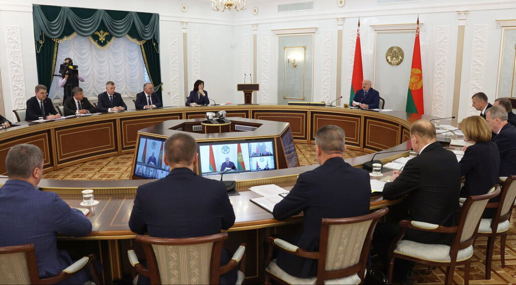 Во Дворце Независимости в Минске и по видеосвязи в селекторном совещании приняли участие высшие должностные лица, руководители Правительства и Администрации Президента, ряда министерств и ведомств, уполномоченные главы государства в областях и городе Минске, руководителей облисполкомов и всех районов страны.