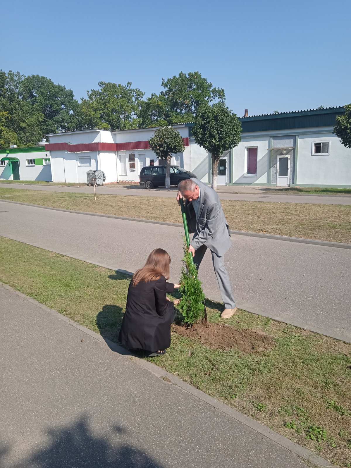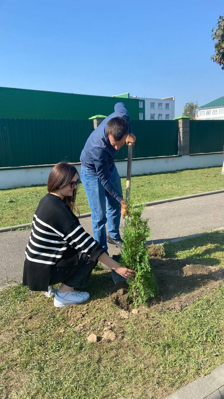 17 сентября 2024 года в рамках акции, приуроченной к 85-й годовщине воссоединения Западной Беларуси и БССР, молодые работники ОАО «Мостовдрев» и председатель Гродненской областной организации профсоюза работников леса и природопользования Александр Жук высадили туи возле гостиницы предприятия.