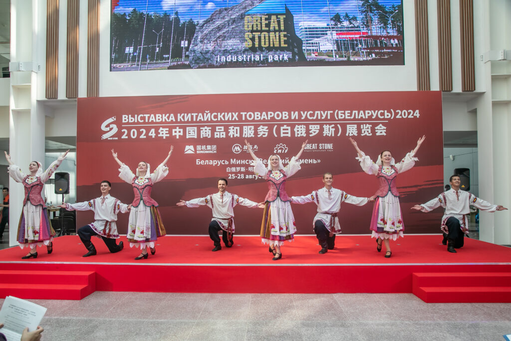 А утром 26 августа состоялась торжественная церемония открытия «Выставки китайских товаров и услуг». На сцену поднялись высокие гости из Китая и Беларуси.