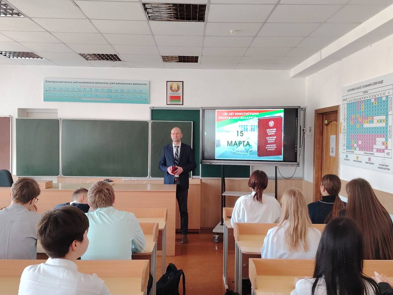 15 марта 2024 года идеологический и профсоюзный актив лесхозов Гродненской области провели уроки с учащимися школьных лесничеств по названием «Что для нас Конституция?». Во время их проведения участники обсудили значимость этой даты для нашей страны, а также обсудили некоторые из статей Конституции РБ.