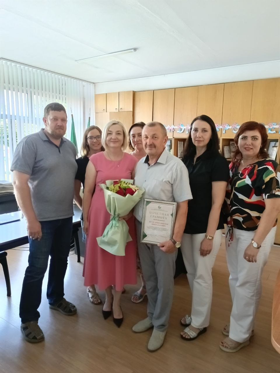 С искренними поздравлениями к имениннику обратилась Елена Квартник, председаль Гродненской областной организации Профсоюза работников леса и природопользования. Елена Павловна выразила слова благодарности за труд и верность профсоюзному движению, чуткое и внимательное отношение к людям и их проблемам. В присутствии коллег она вручила имениннику Почетную грамоту отраслевого Профсоюза и выразила Виктору Николаевичу искренние пожелания с 60-летним юбилеем!