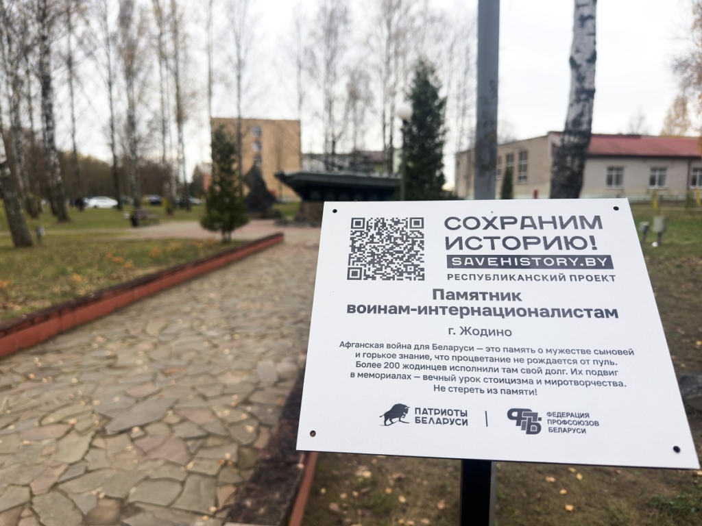 Его цель – с помощью современных технологий сделать доступной достоверную информацию о каждом памятном месте на нашей земле. О масштабах задумки свидетельствует тот факт, что только с Великой Отечественной войной связано более 40 тысяч таких мест. Сегодня новая табличка с QR-кодом была установлена в Жодино – у памятника воинам-интернационалистам в сквере рядом со зданием политехнического колледжа.