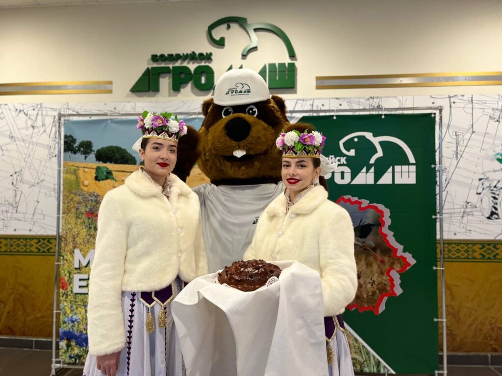 Караваями встретили блогеров в «УКХ «Бобруйскагромаш», рассказали им о работе предприятия, провели по цехам завода. И, конечно же, не оставили без памятных подарков.