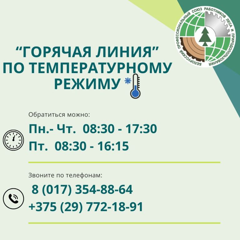 Белорусский профсоюз работников леса и природопользования до конца февраля 2026 года проводит общественный контроль за соблюдением законодательства об охране труда на рабочих местах в условиях пониженной температуры окружающего воздуха. Техническая инспекция труда отраслевого Профсоюза проводит разъяснительную работу среди работников и нанимателей об их правах и обязанностях в соответствии с требованиями действующего законодательства.
