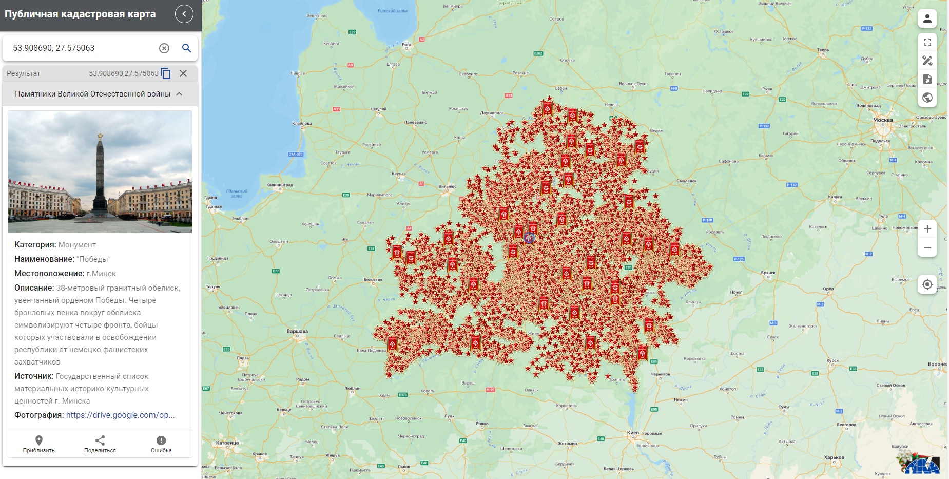 - направить актуальные данные или фото (если оно устарело) в отношении памятника, который уже размещен на публичной кадастровой карте. После проведения проверки соответствующие данные появятся в слое «Памятники Великой Отечественной войны».