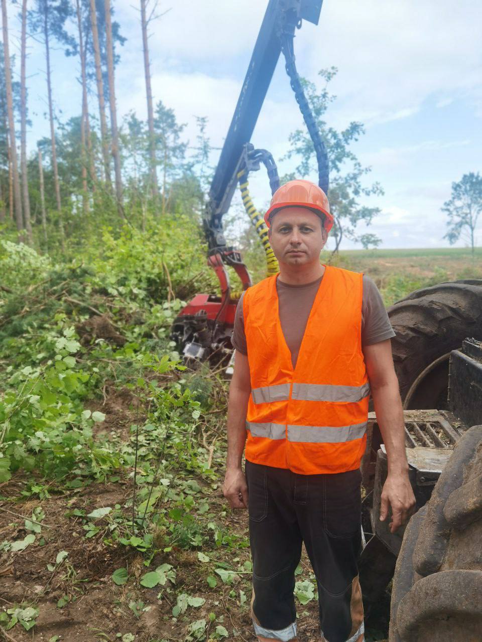 С июля 2020 работает оператором харвестера Komatsu 911. Уже более месяца трудиться на устранении последствий усиления ветра в Зельвенском опытном лесничестве Слонимского лесхоза.