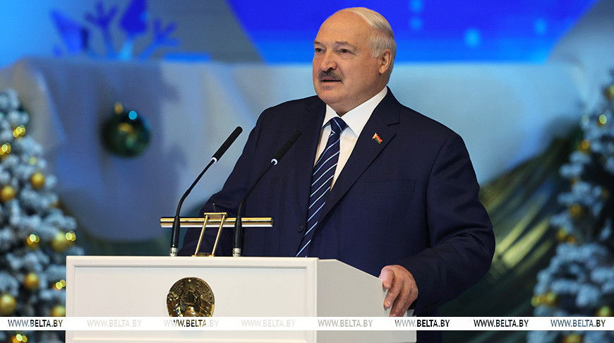 Александр Лукашенко рассказал, что, идя на праздник, подумал, что это самая сложная аудитория: «Здесь люди очень разные. Разные по возрасту, по своим должностям. Это и члены правительства, министры, и обычные школьники, которые только что начали учебу в наших школах. Но всех нас сегодня в этом зале объединяет одно: впереди большой любимый праздник — наш Новый год».