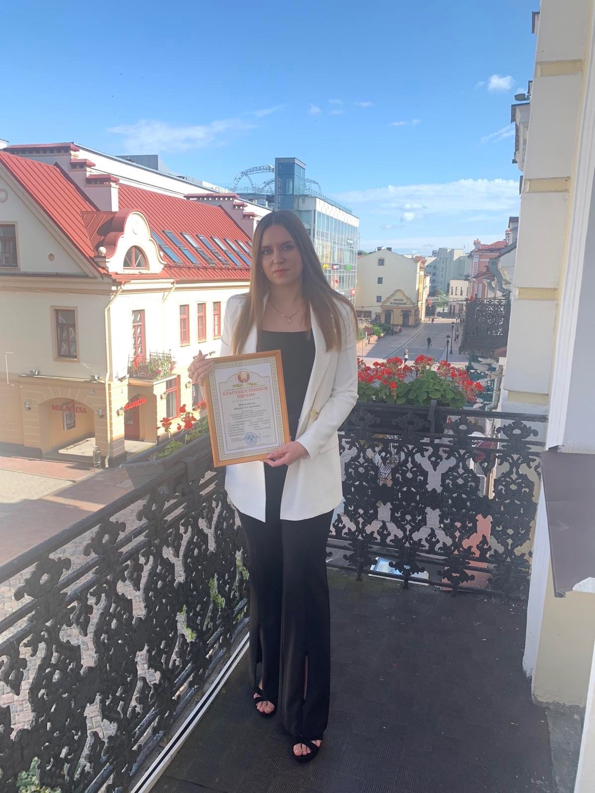 На торжественном мероприятии, посвященном Дню охраны окружающей среды, была награждена благодарственным письмом Гродненского райисполкома за значительный вклад в осуществление государственного контроля в области охраны окружающей среды и рационального использования природных ресурсов.