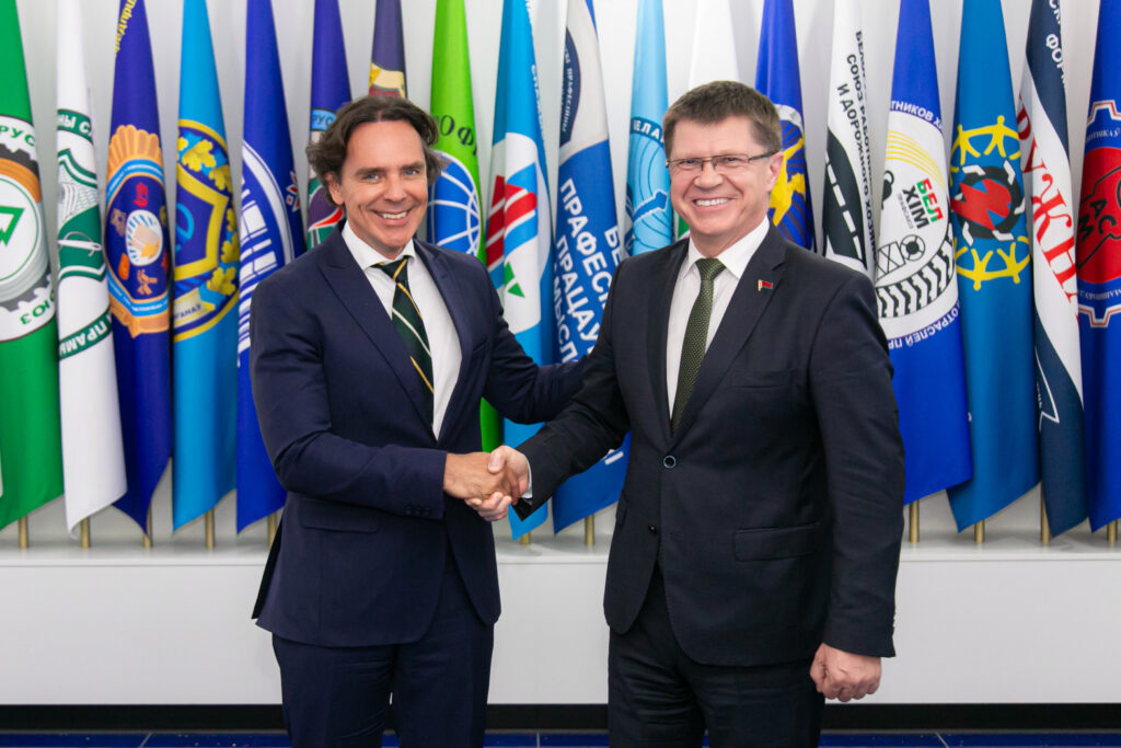 Председатель Федерации профсоюзов Беларуси Юрий Сенько 27 сентября встретился с Чрезвычайным и Полномочным Послом Федеративной Республики Бразилия в Республике Беларусь Бернардом Жоргом Леопольдом де Гарсия Клинглом.