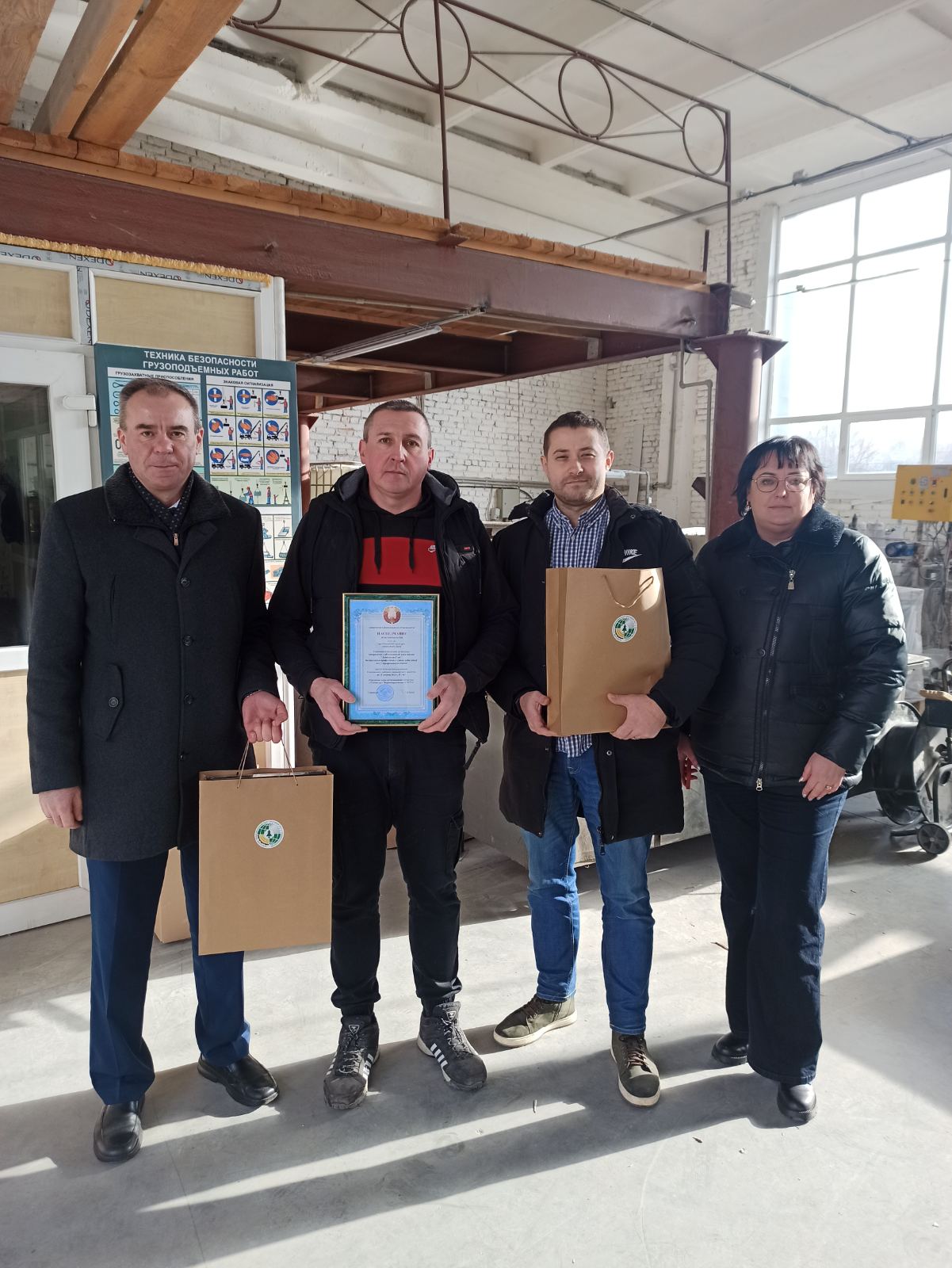 Председатель Гродненской областной организации профсоюза Александр Жук совместно с председателем районного объединения профсоюзов Ольгой Радевич посетили предприятие и встретились с профактивом. Лидер отраслевого профсоюза Гродненской области вручил профорганизатору свидетельство о постановке первичной профчсоюзной организации на учёт, а также подарок для улучшения бытовых условий членов профсоюза.
