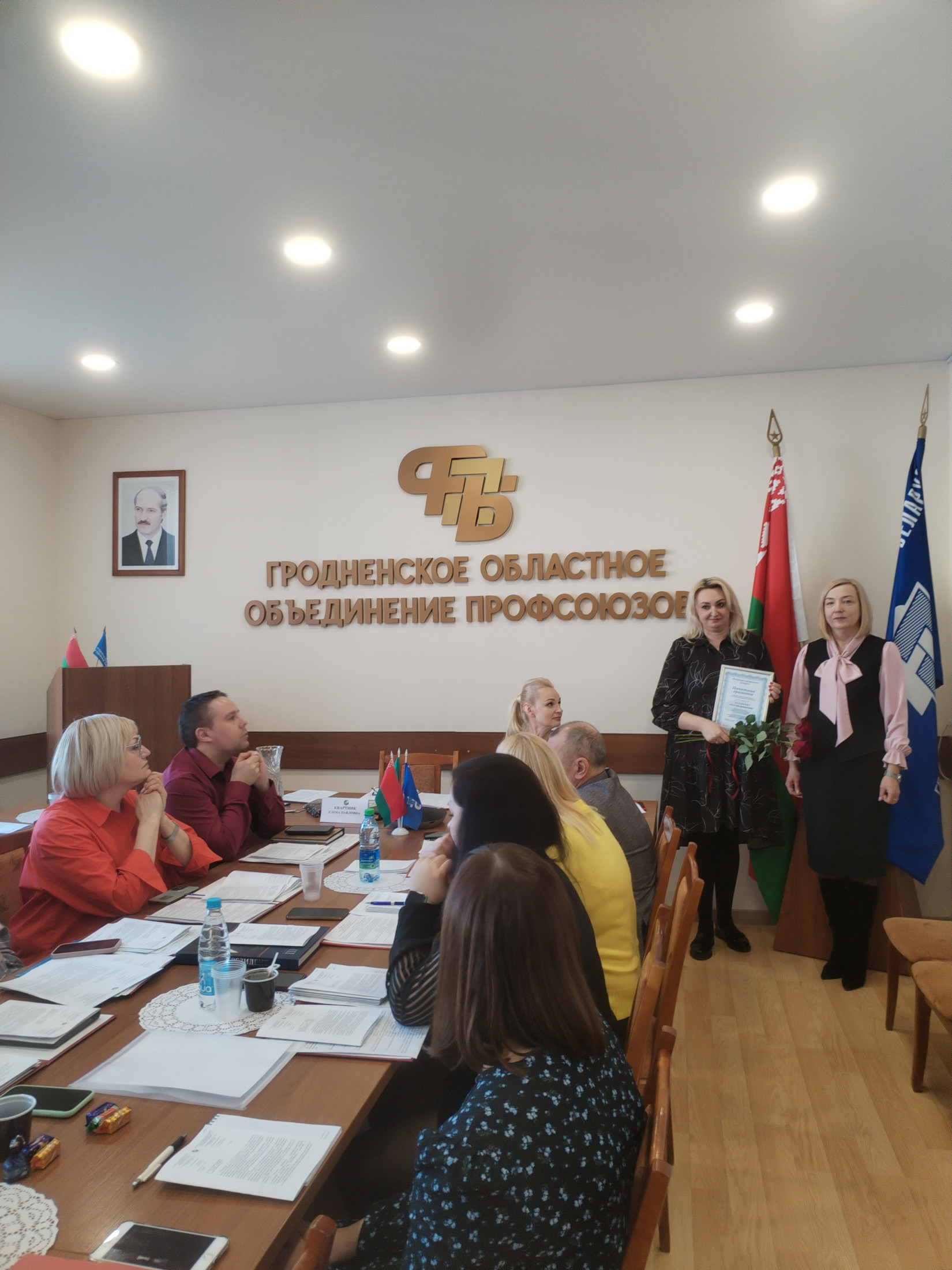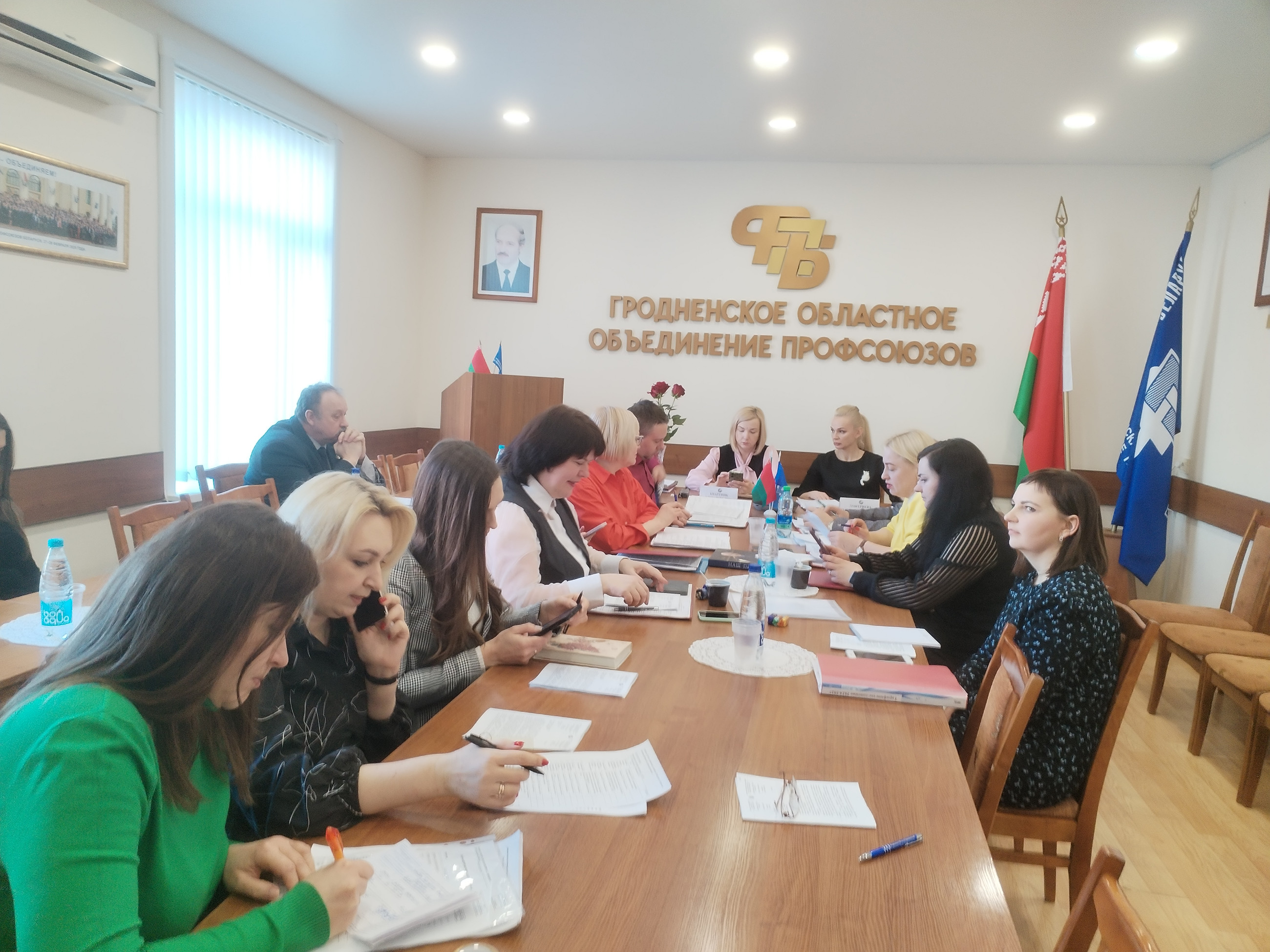 В расширенном составе с участием председателей первичных профсоюзных организаций состоялось заседание президиума Гродненского областного комитета профсоюза. В работе заседания приняла Дмитриева Ольга Викторовна, заведующий отделом социального партнёрства и трудовых отношений Гродненского областного объединения профсоюзов.
