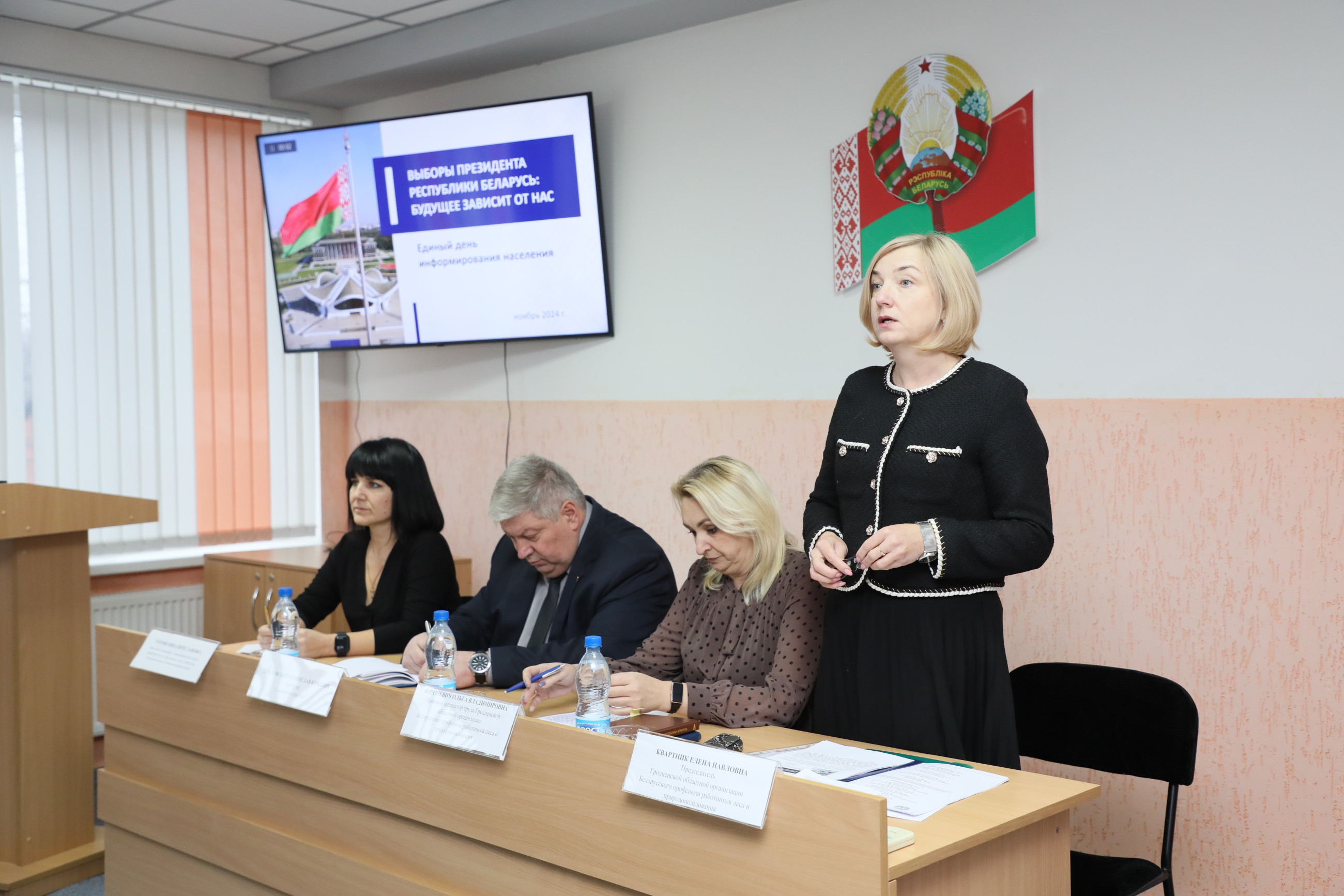 Председатель Гродненской областной организации Белорусского профсоюза работников леса и природопользования Елена Павловна Квартник, главный правовой инспектор труда Гродненской областной организации Белорусского профсоюза работников леса и природопользования Ольга Владимировна Юрашевич, прокурор Слонимского района Станислав Юрьевич Дмуховский, заместитель начальника – начальник отдела труда и заработной платы управления по труду, занятости и социальной защите Слонимского райисполкома Инна Вячеславовна Томчик встретились с коллективом ОАО «Слонимский картонно-бумажный завод «Альбертин».