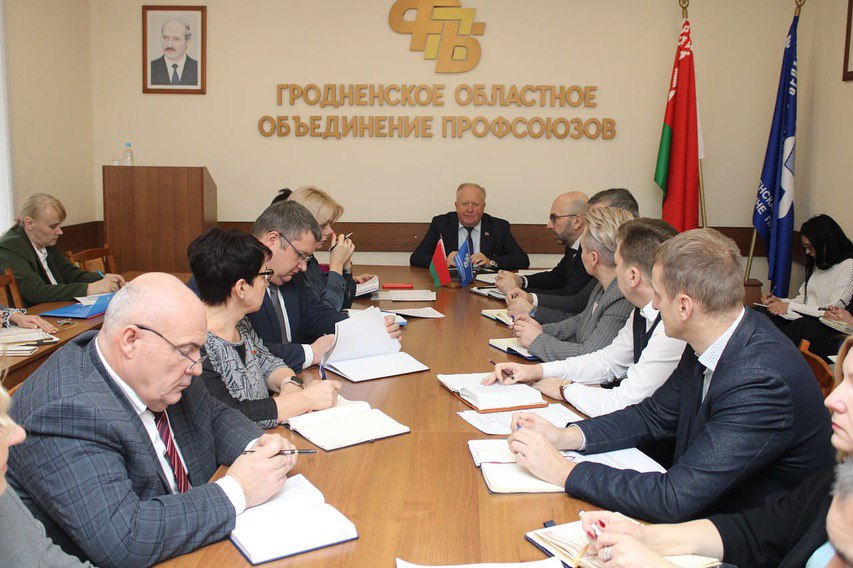 В Гродненском областном объединении профсоюзов состоялось плановое совещание с председателями областных организаций отраслевых профсоюзов. Участники встречи обсудили ключевые вопросы, касающиеся профсоюзной деятельности в регионе.