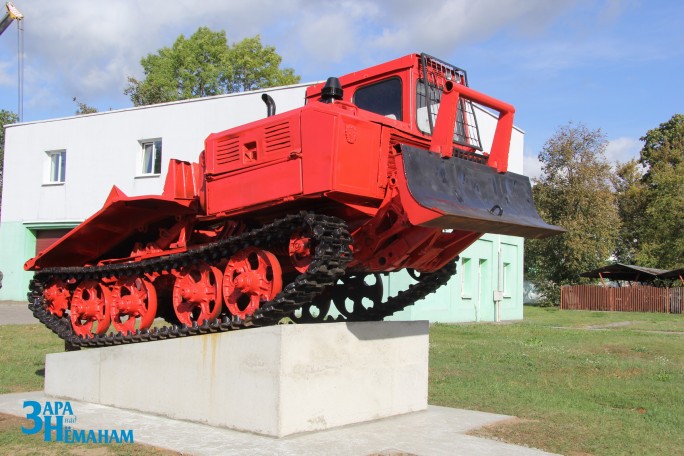 На территории лесопильно-деревообрабатывающего цеха ОАО «Мостовдрев» на постаменте недавно был установлен трелёвочный трактор.