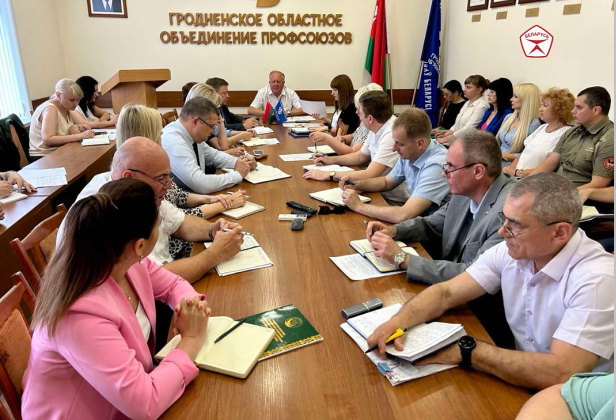 В Гродненском областном объединении профсоюзов состоялось плановое совещание с председателями областных организаций отраслевых профсоюзов. Главные темы – контроль вопросов охраны труда во время посевной и уборочной компаний и безопасность пребывания детей в оздоровительных учреждениях.
