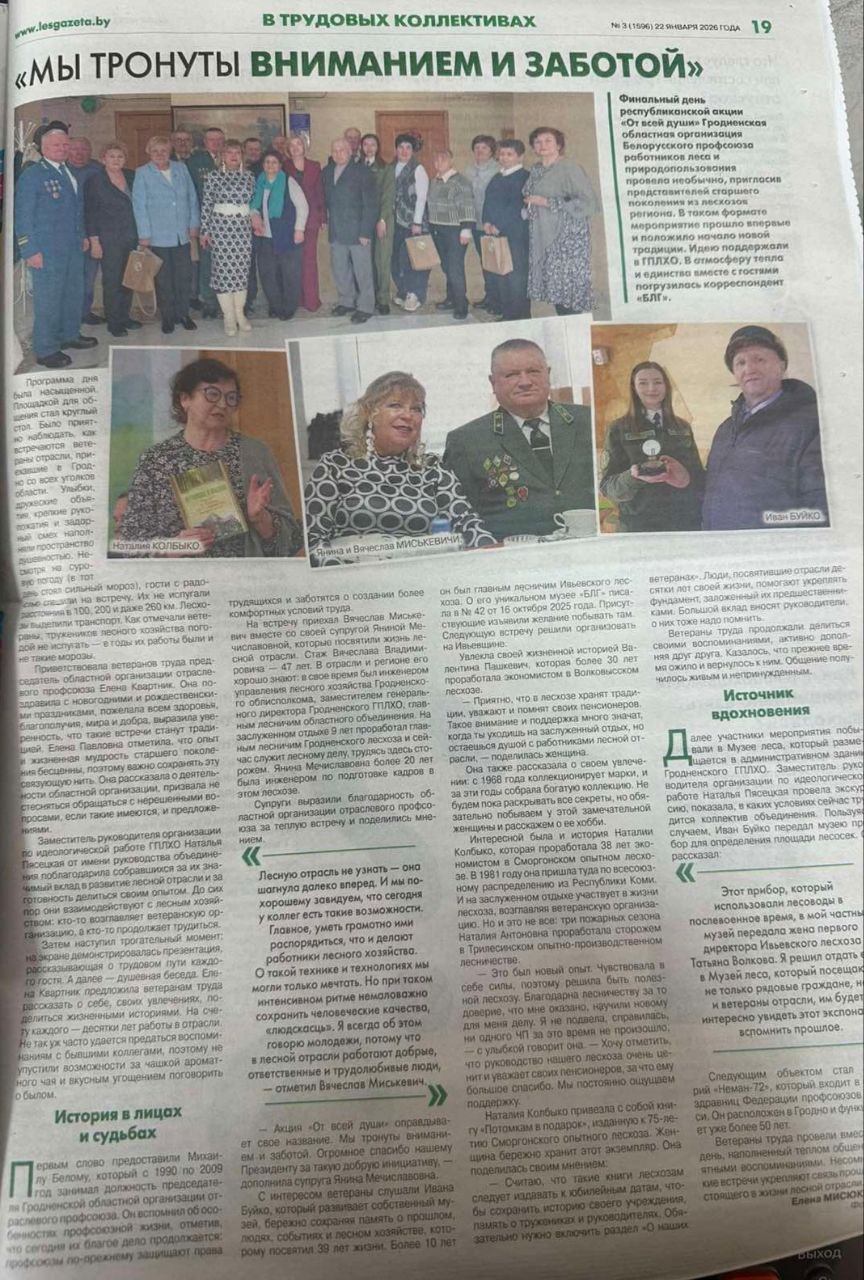 В рамках марафона добрых дел «От всей души» областная организация Белорусского профсоюза работников леса и природопользования организовала особенное мероприятие для ветеранов отрасли.