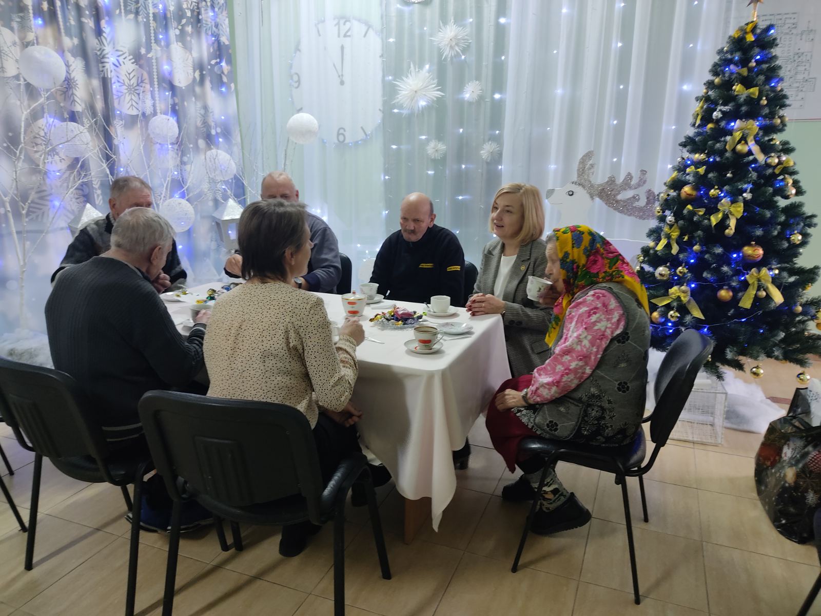 Основной целью посещения было создание теплой и дружелюбной атмосферы для пожилых людей, проживающих в пансионате. За чашкой чая участники встречи смогли рассказать о ярких моментах своей жизни, поделиться своим опытом и впечатлениями. Председатель областной организации Елена Квартник поздравила постояльцев с Новогодними и Рождественскими праздниками и пожелала всем крепкого здоровья, радости жизни и душевного тепла, а также вручила подарки, сладости и фрукты.
