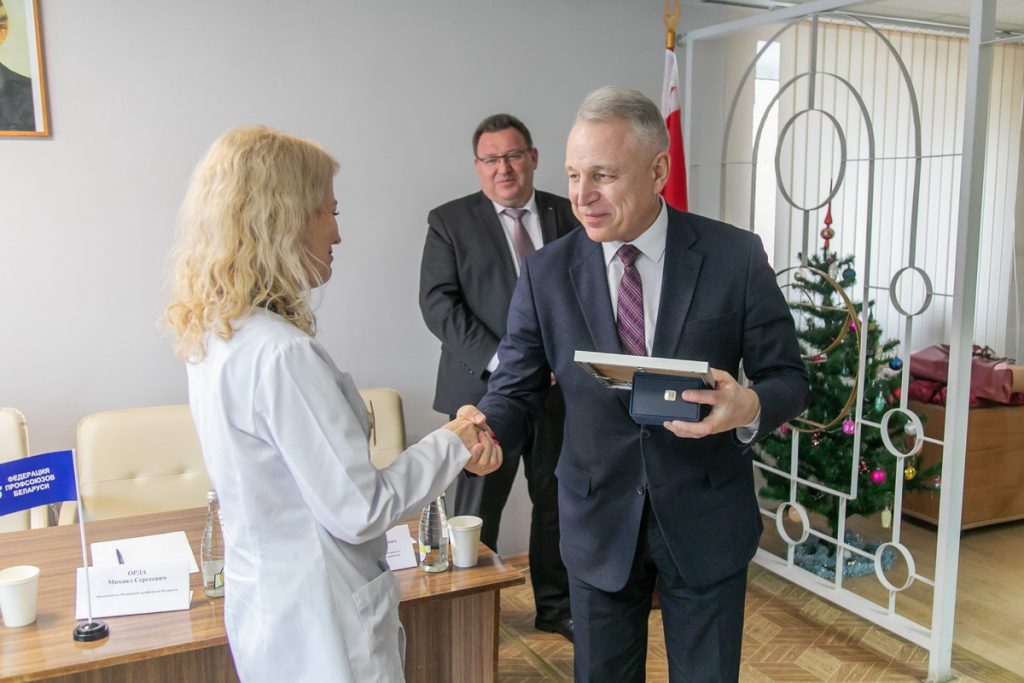 Председатель ФПБ Михаил Орда вручил профсоюзные награды лучшим работникам Атолинской больницы