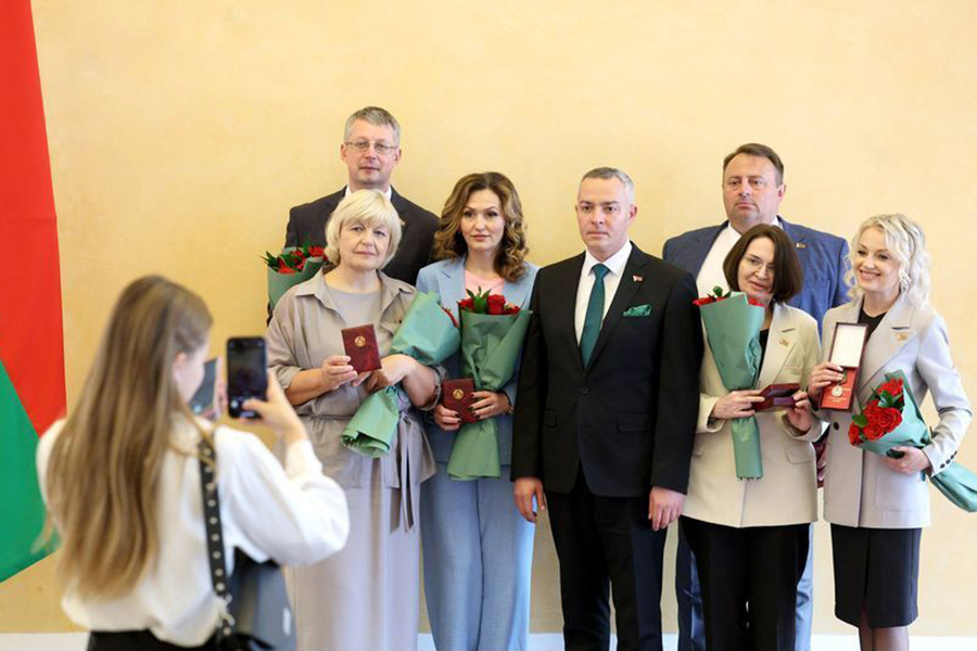 Государственная награда – это признание конкретных результатов, знак уважения опыту и профессионализму. «Это и благодарность вам за выдержку, верность делу, самоотверженный и честный труд, от которого зависит будущее Республики Беларусь», – обратился он к награждаемым.
