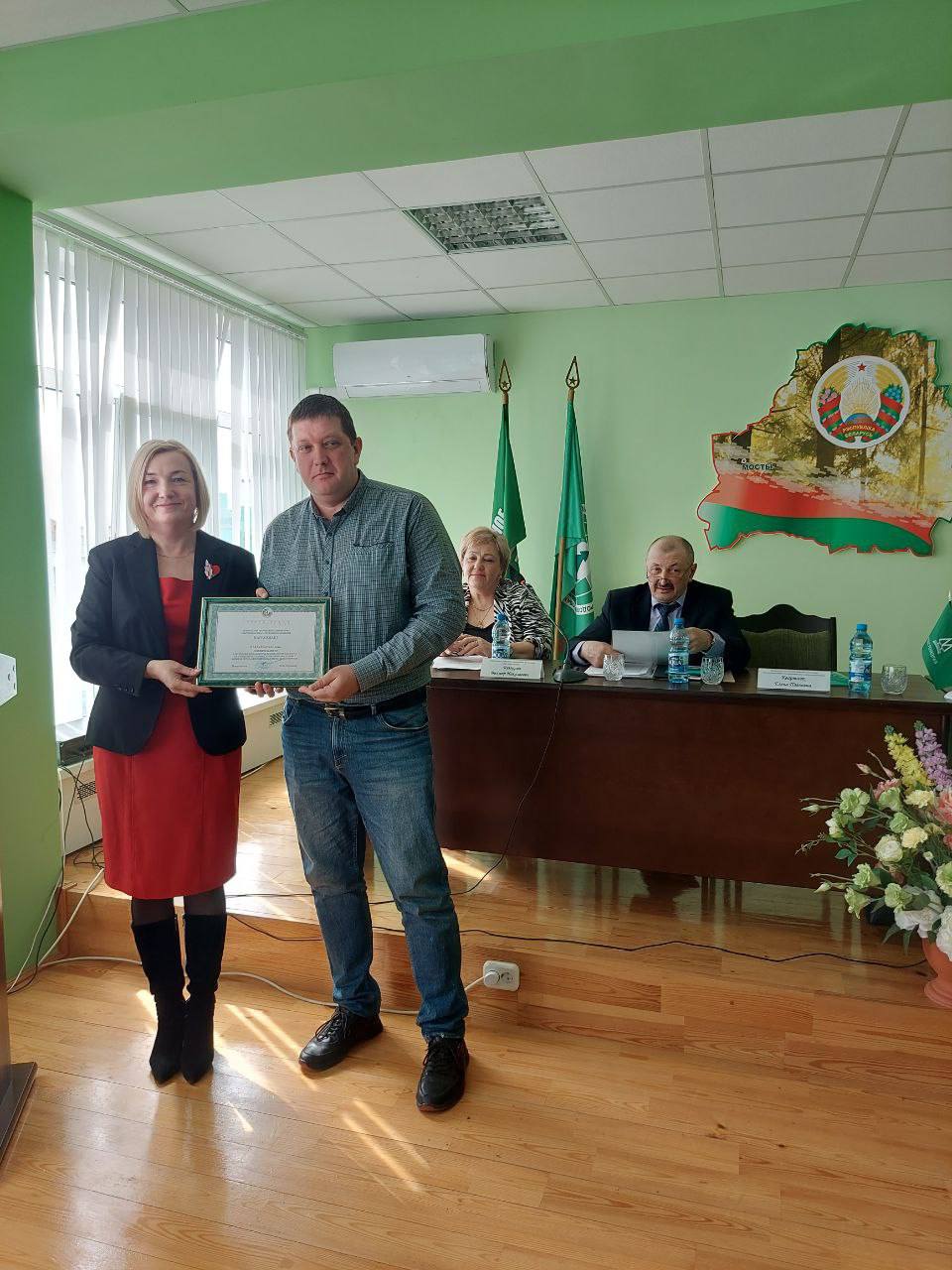 Председатель областной организации профсоюза работников леса и природопользования Елена Квартник, отметила результативность взаимодействия Нанимателя и профсоюзного комитета ОАО «Мостовдрев», вручила заведующему спортивным сектором Дмитрию Заблоцкому диплом за второе место в Республиканском отраслевом смотре-конкурсе на лучшую спортивно-массовую работу.