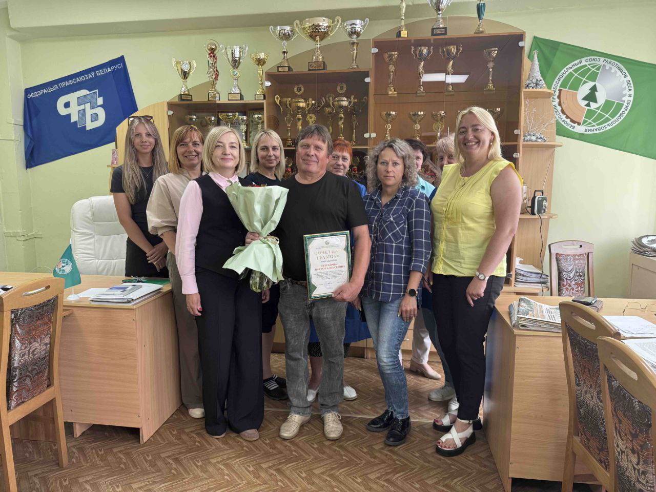 Председатель Гродненской областной организации Белорусского профсоюза работников леса и природопользования Елена Павловна Квартник в присутствии профсоюзного актива вручила Виктору Алексеевичу Почетную грамоту Республиканского комитета Белорусского профсоюза работников леса и природопользования.