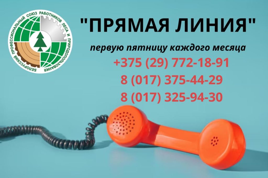 Белорусский профессиональный союз работников леса и природопользования первую пятницу каждого месяца проводит “прямую телефонную линию” по вопросам соблюдения законодательства о труде и охране труда, оплаты труда, гарантий для молодых специалистов и другим вопросам.