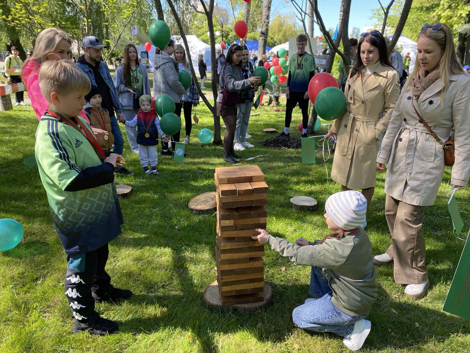 Мамы, папы, бабушки с детьми - все стали активными участниками игр и развлечений.
