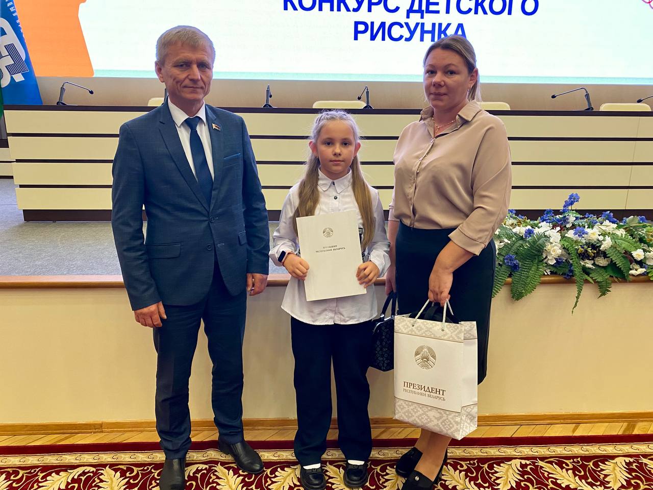 Напомним, конкурс рисунка организовал Белорусский профсоюз работников культуры, информации, спорта и туризма, а приурочен он был к 30-летию института президентства в Республике Беларусь. Победителей выбрали в двух номинациях – среди учащихся детских школ искусств и детей членов профсоюза. Отметим, что свои работы прислали более 150 детей и подростков. Авторы 50 лучших работ представляющие все регионы страны, и были приглашены вместе с родителями в штаб-квартиру ФПБ. Самому младшему автору – 6 лет, старшему – 16.