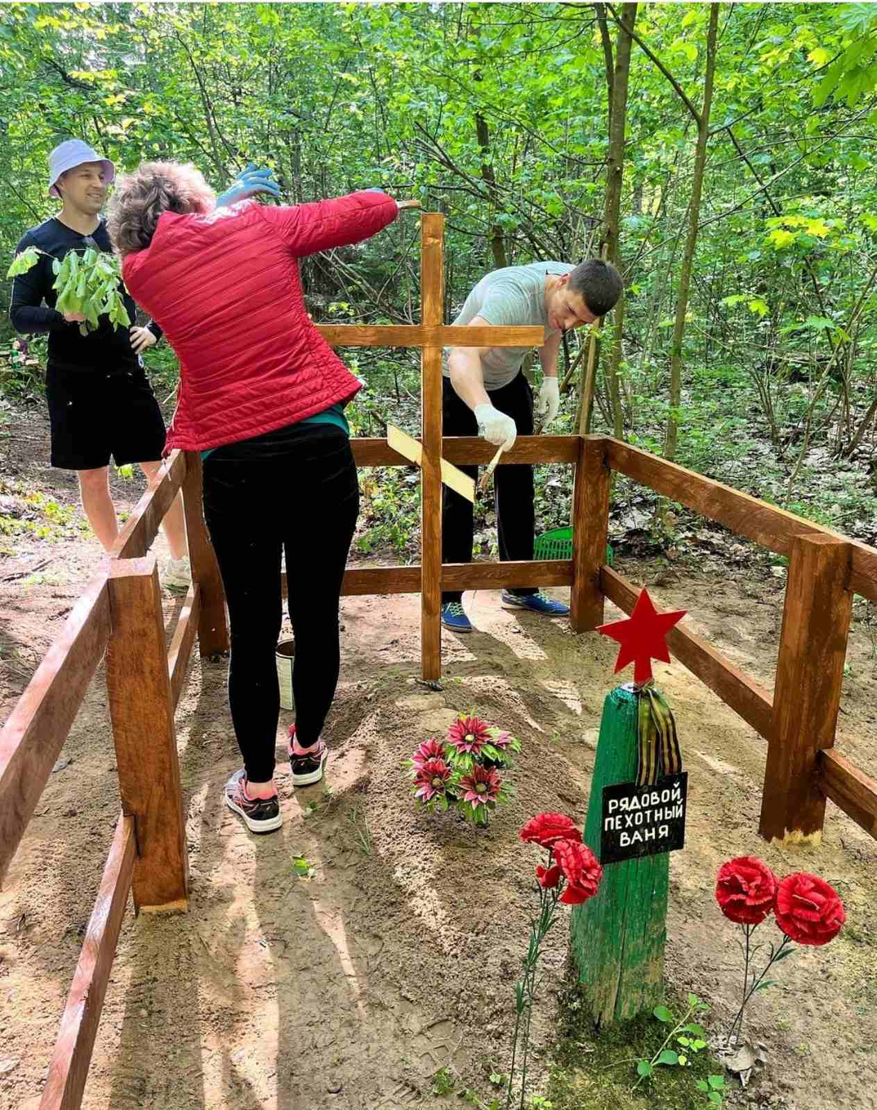 "Рядовой пехотный Ваня". Профсоюзные активисты Щучинского лесхоза благоустроили могилу неизвестного солдата