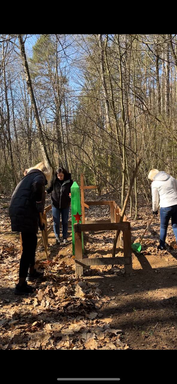 Окрасили памятный знак, обновили надпись, очистили территорию, убрали старую прошлогоднюю листву.