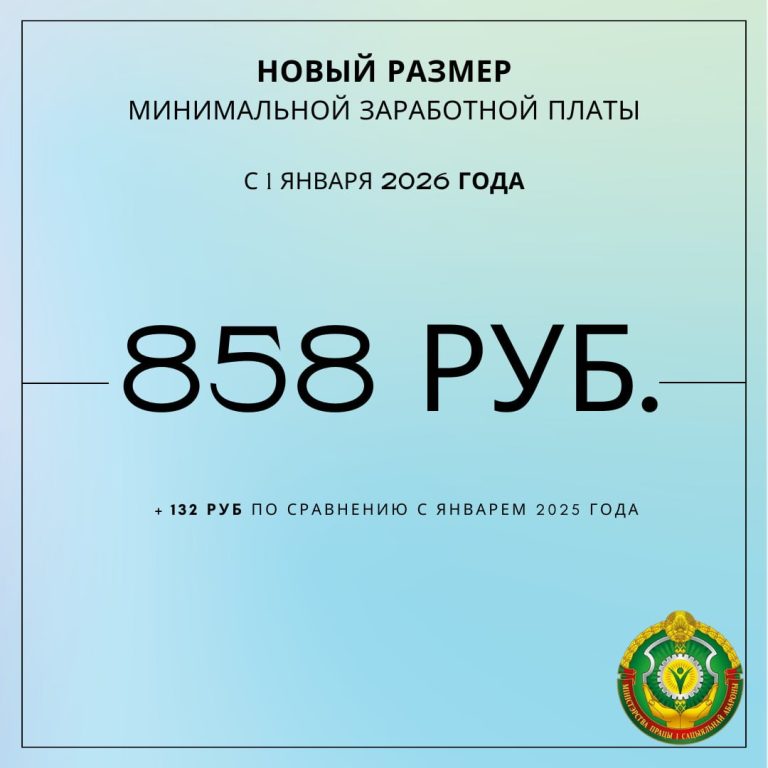 С 1 января 2026 г. минимальная заработная плата установлена в размере 858 рублей