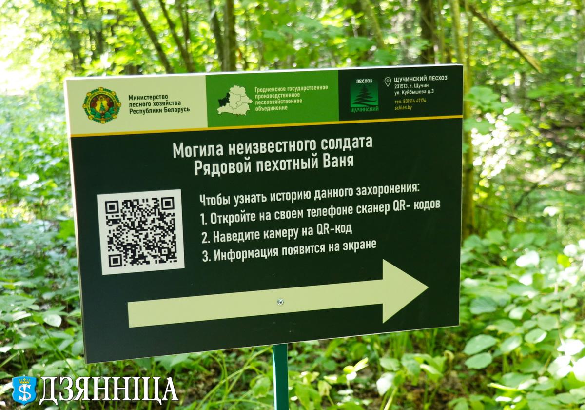 Щучинские лесоводы взяли шефство над могилой неизвестного солдата и установили неподалёку от этого захоронения указательную таблицу с QR-кодом.