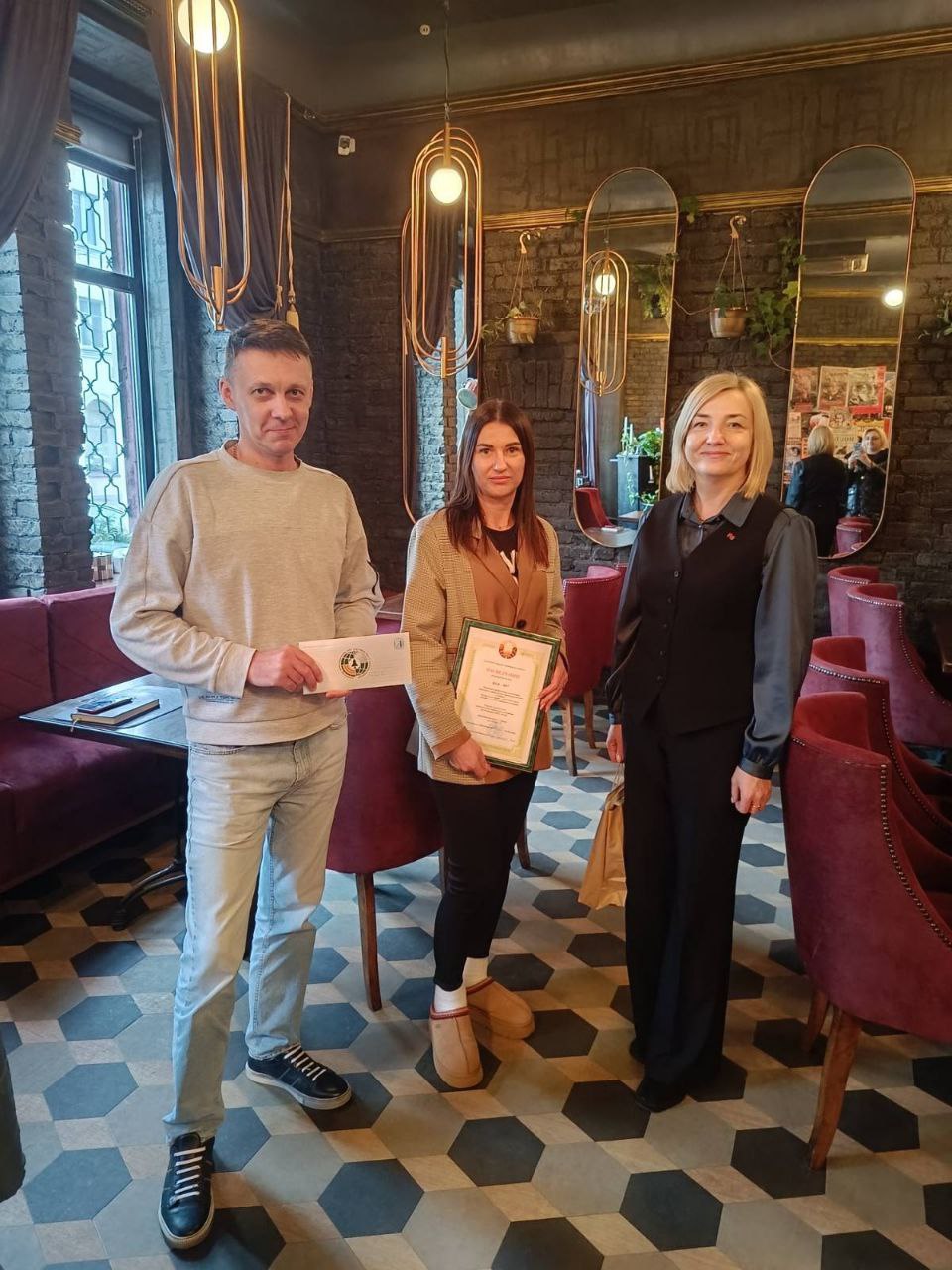 Председатель областной организации профсоюза Елена Квартник вручила свидетельство о постановке на учёт ППО ООО "СТИВда". Члены профсоюза также получили в подарок сертификат в одну из торговых сетей города.