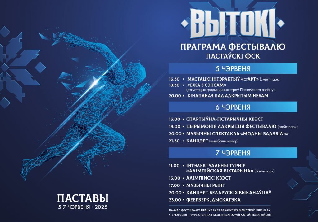 В 2025 году спортивно-культурный фестиваль «Вытокi» с 5 по 7 июня примет один из самых красивых городов Витебщины – Поставы.