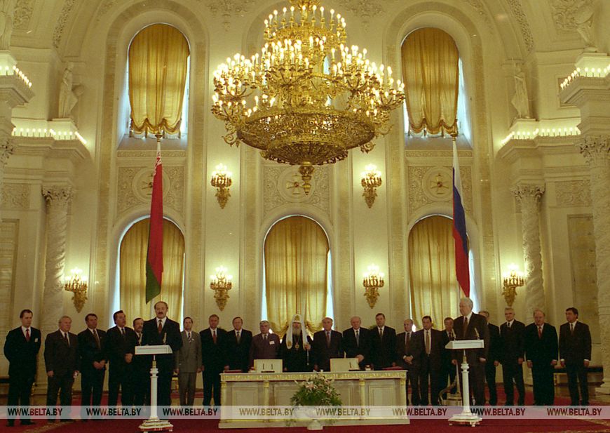 2 апреля 1996 года был подписан Договор об образовании Сообщества Беларуси и России, в соответствии с которым было решено создать политически и экономически интегрированное сообщество в целях объединения материального и интеллектуального потенциала двух государств. Подписали документ в Москве Президент Беларуси Александр Лукашенко и Президент России Борис Ельцин.