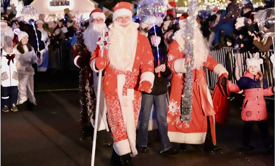 От площади Ленина стартовало традиционное шествие Дедов Морозов, Снегурочек и сказочных героев. Всего в постановке было задействовано около 600 человек. Участие в шествии также приняли театр живых скульптур «Ларчик» и духовой оркестр.
