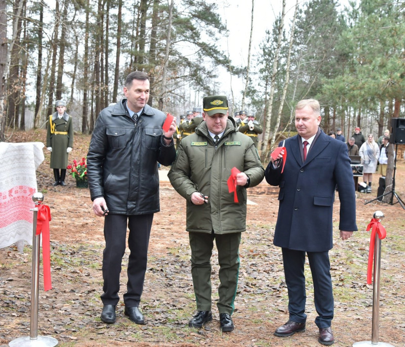 Почетные гости торжественно открыли памятный знак советским партизанам – освободителям Налибокской пущи и высадили у него саженцы туи.
