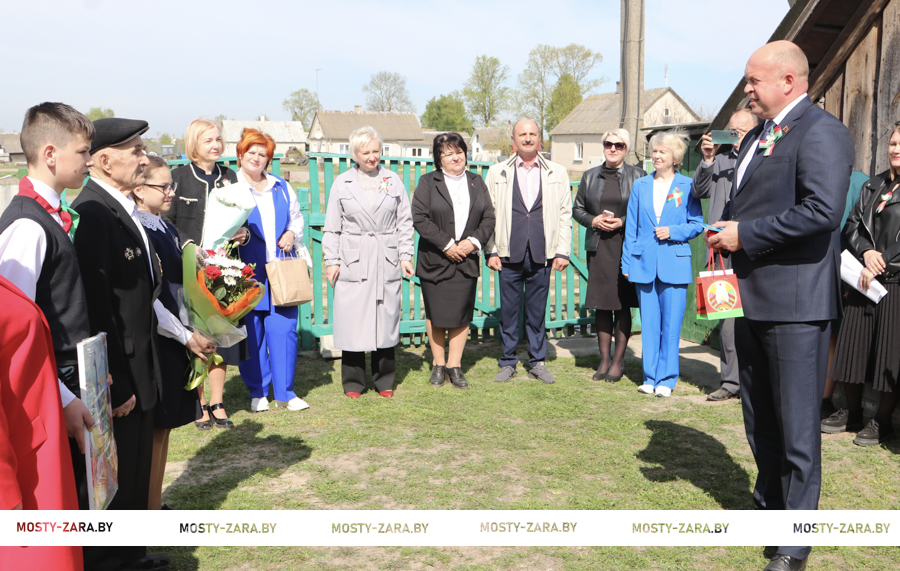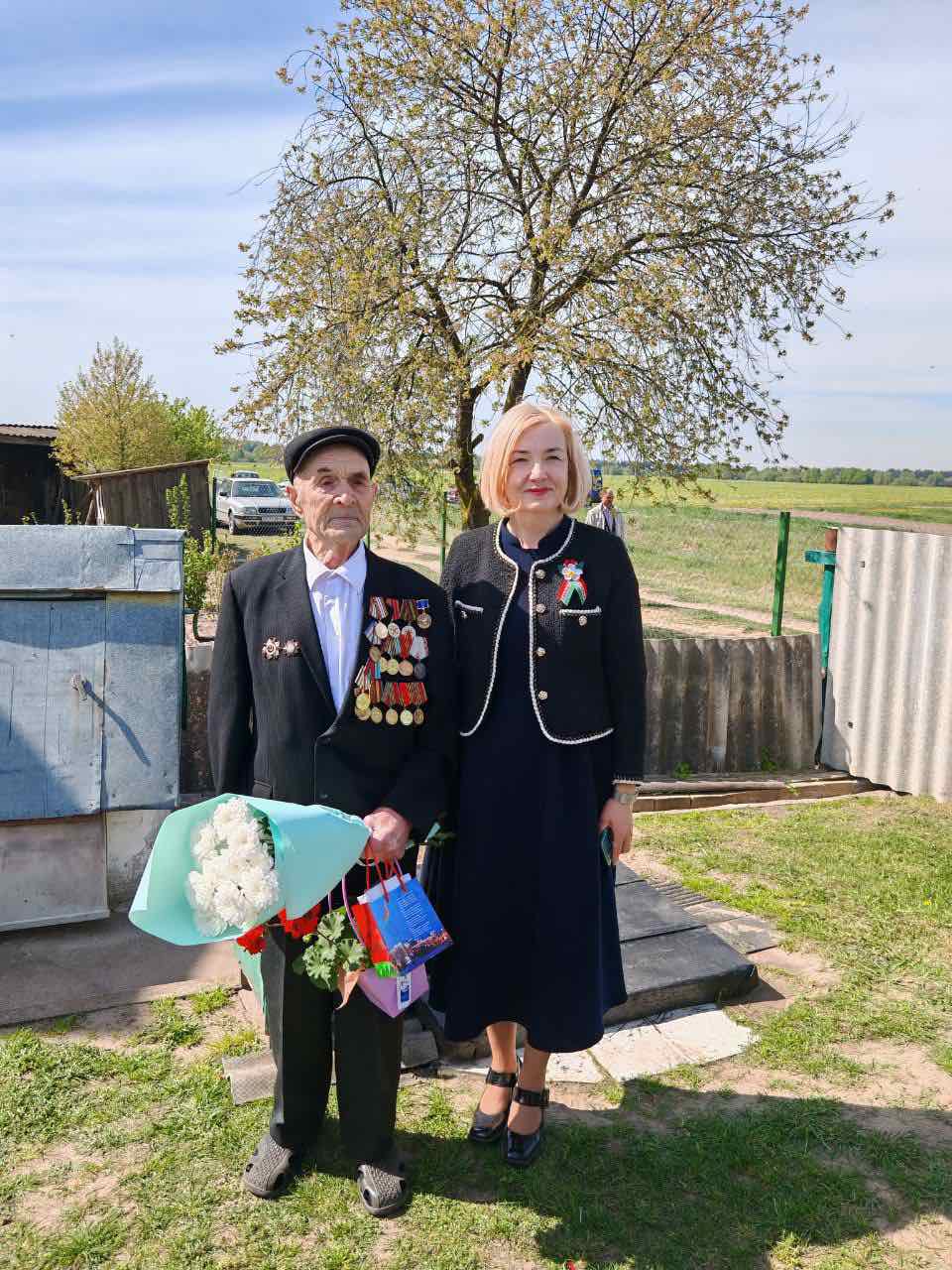 Председатель Гродненской областной организации Белорусского профсоюза работников леса и природопользования Елена Квартник в составе делегации Мостовского района поздравила Николая Михайловича с наступающим праздником Великой Победы, выразила слова благодарности, пожелала долгих лет жизни, вручила цветы и сертификат.
