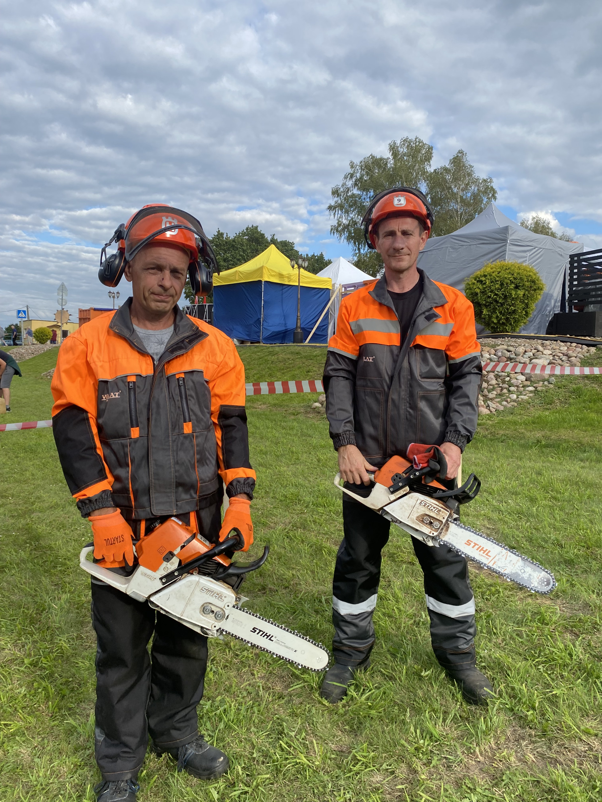 Вальщик леса Росского лесничества Пивоварчик Эдуард Дайняк Сергей, вальщик леса Берестовицкого лесничества показали свое профессиональное мастерство на районных Дожинках в агрогородке Малая Берестовица.