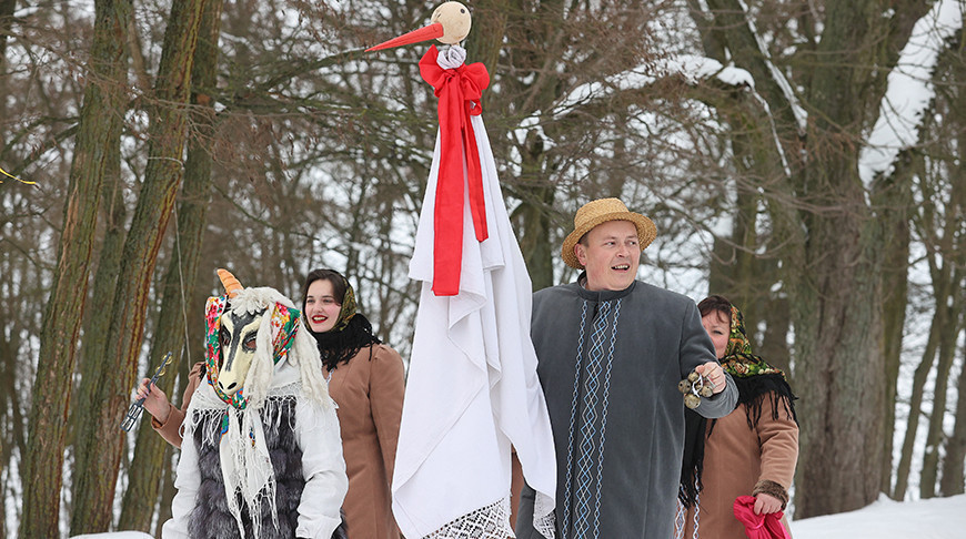 Коза, кстати, не единственный символ, без которого не обходится Коляда. «Ходим мы по деревням нашего сельского совета и всегда у нас с собой звезда — символ Рождества, аист — птица, которая парит по небу и ближе всего находится к Христу. С собой мы водим всегда козу, которая символизирует урожайность и не только. Мы поем песни, которыми прославляем Исуса Христа. Желаем здоровья и всего самого хорошего людям», — рассказывает заведующий Квасовского центра культуры и развития народного творчества, руководитель народной фольклорной группы «Жывіца» Денис Болабуев.