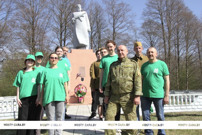 Молодёжный трудовой десант ОАО «Мостовдрев» выехал в деревню Задворье, чтобы принять участие в благоустройстве территории вокруг братской могилы и памятника погибшим во время Великой Отечественной войны жителям.