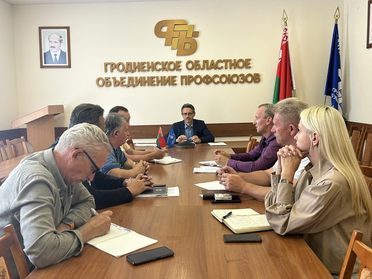 Кроме того, обсуждались оперативные вопросы деятельности, включая выезды рейдовых групп технической инспекции труда Федерации профсоюзов Беларуси, общественный контроль за соблюдением температурного режима на рабочих местах и др.