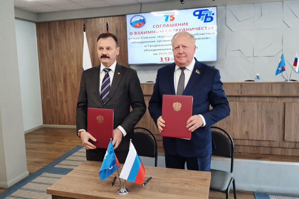 Состоялось подписание Соглашения о взаимном сотрудничестве между Союзом «Калининградское областное объединение организаций профсоюзов» и Гродненским областным объединением профсоюзов.