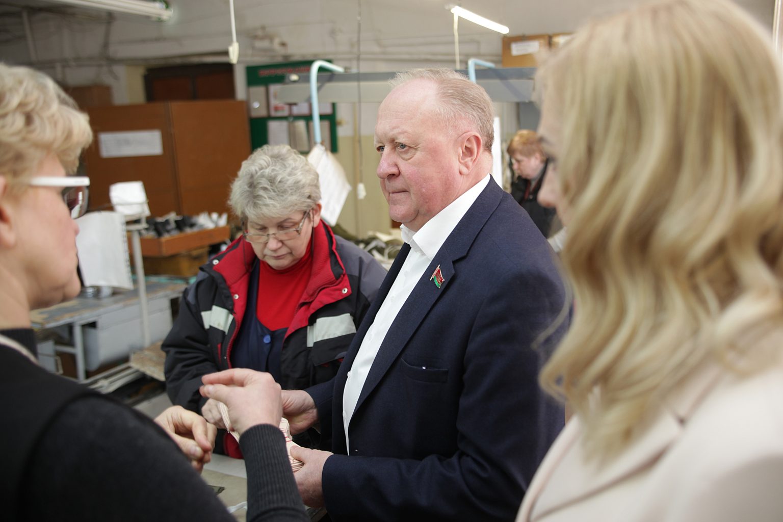 Председатель Гродненского областного объединения профсоюзов, член Совета Республики Национального собрания Республики Беларусь Виктор Лискович провел встречу с трудовым коллективом Лидской обувной фабрики, которая славится своей качественной и износостойкой обувью из натуральных материалов.