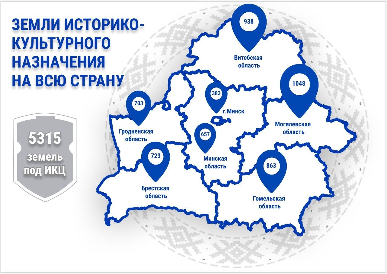 Земли историко-культурного назначения Беларуси внесены в реестр административно-территориальных и территориальных единиц, а также отображены на публичной кадастровой карте для всех заинтересованных.